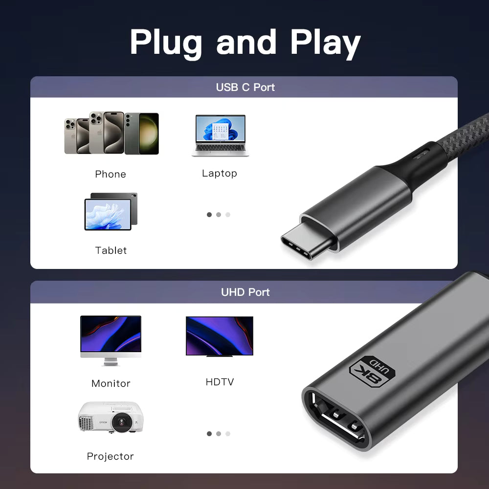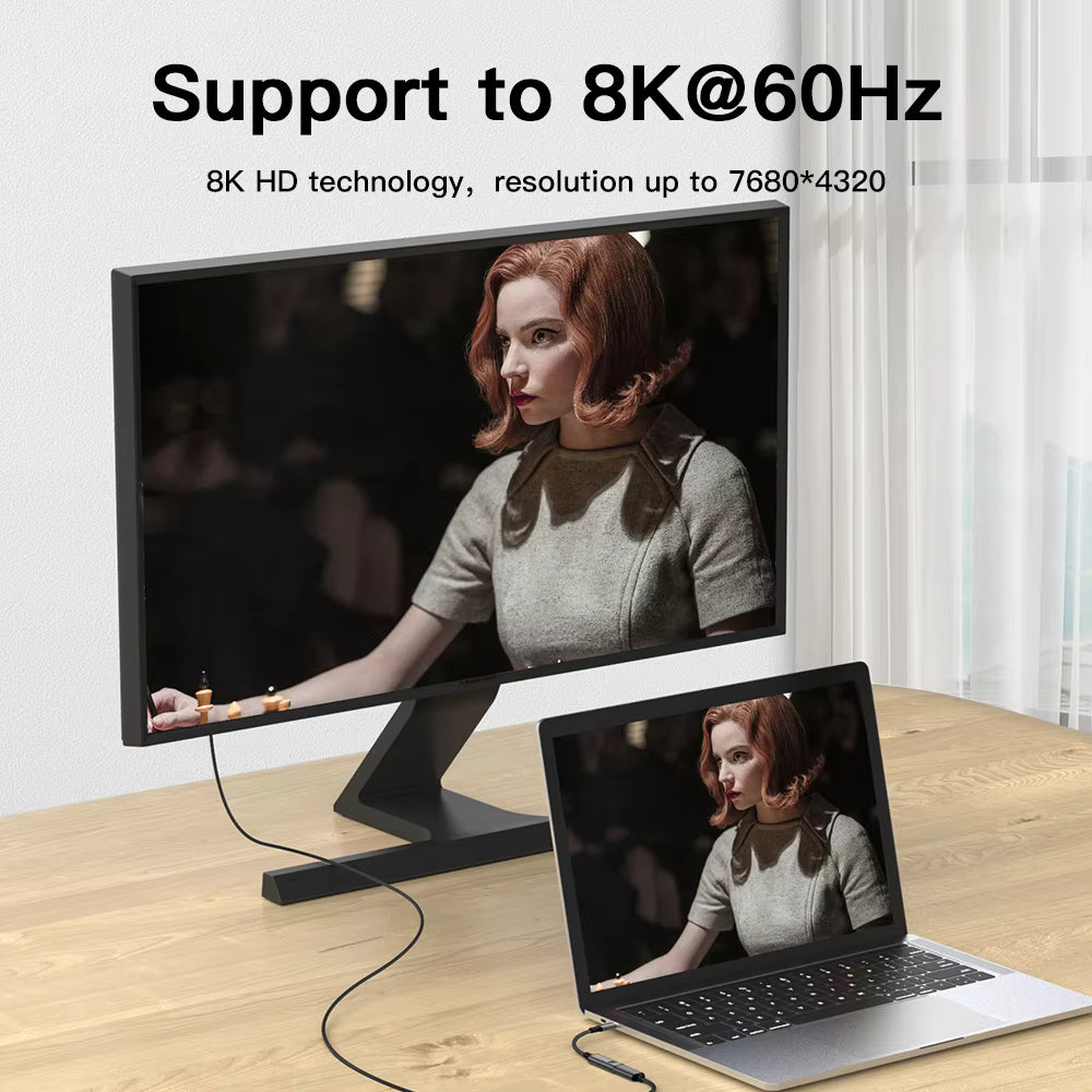UNIEAN 0.2M USB C to HDMI Adapter 8K 60Hz 4K UHD Type C to HDMI Converter Cable for Macbook Pro TV Laptop Monitor Gaming