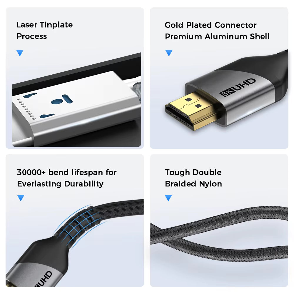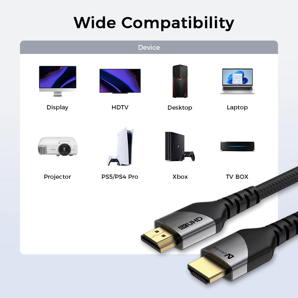 UNIEAN Wholesale High-Definition 2M–10M 2.1 UHD 48Gbps DisplayPort to 8K/4K UHD Video Cable Manufacturer for Monitors and TVs