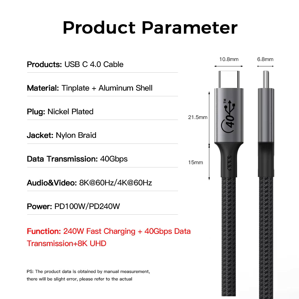 UNIEAN Coaxial Type-c 40Gbps 8K Video 20V 5A Type C to Type C Fast Charging Cable Data Cables PD 100W USB 4.0 for Iphone