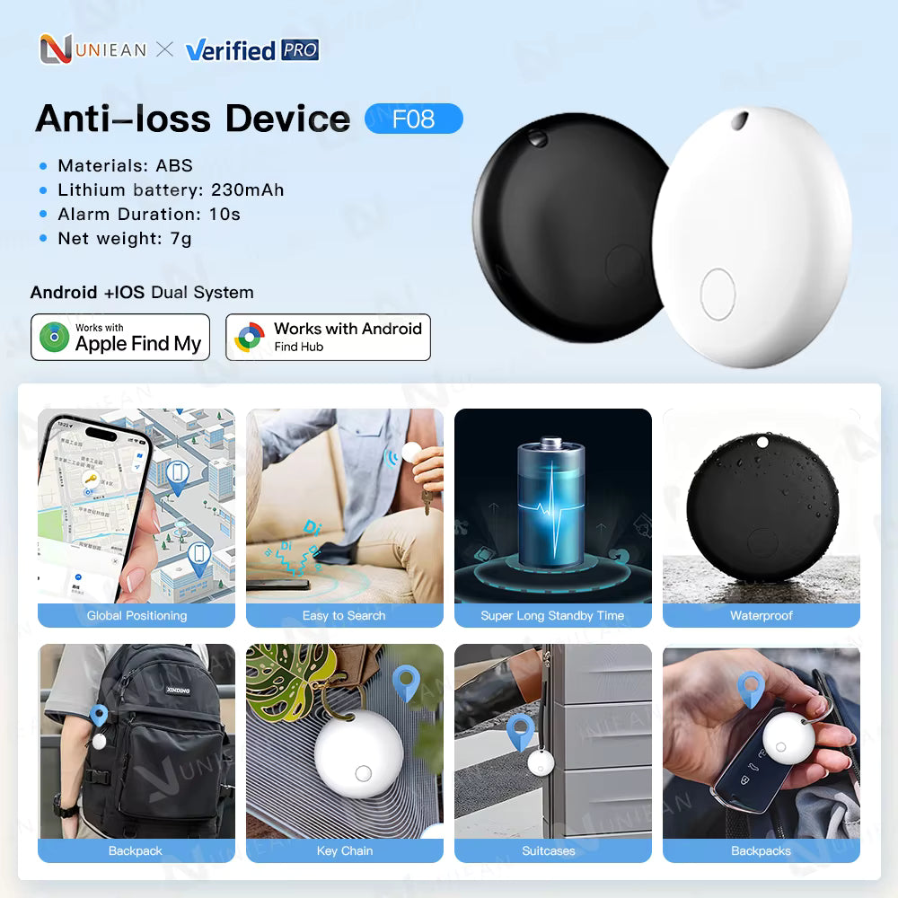 UNIEAN F08 GPS Tracker Finder Locator Find My Smart Air Tag Tracker Key ROHS Certified Wallet Anti Lost for Apple to Android