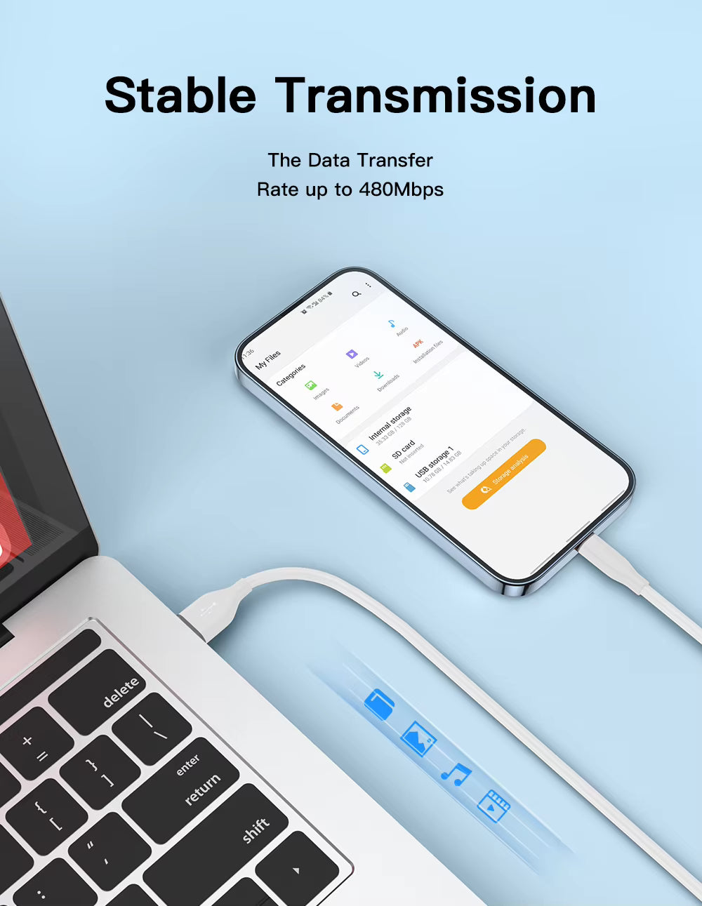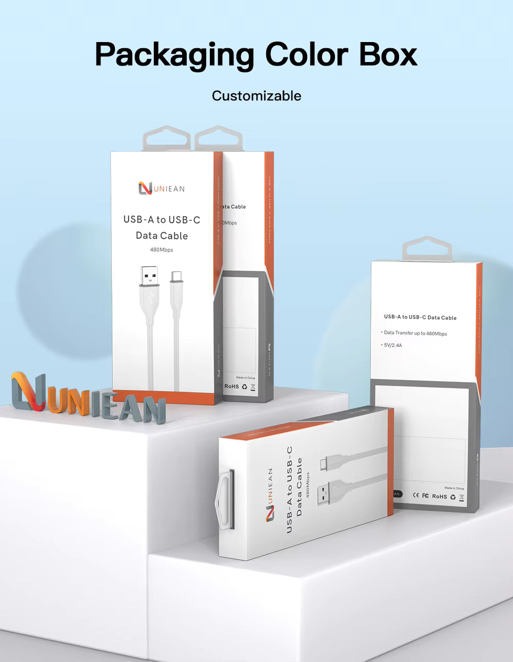 UNIEAN Factory Wholesale 2M 3M USB a to C Cable 5V2A Type C Usb Fast Charging Cable USB C 2.0 60W Data Cables for Iphones