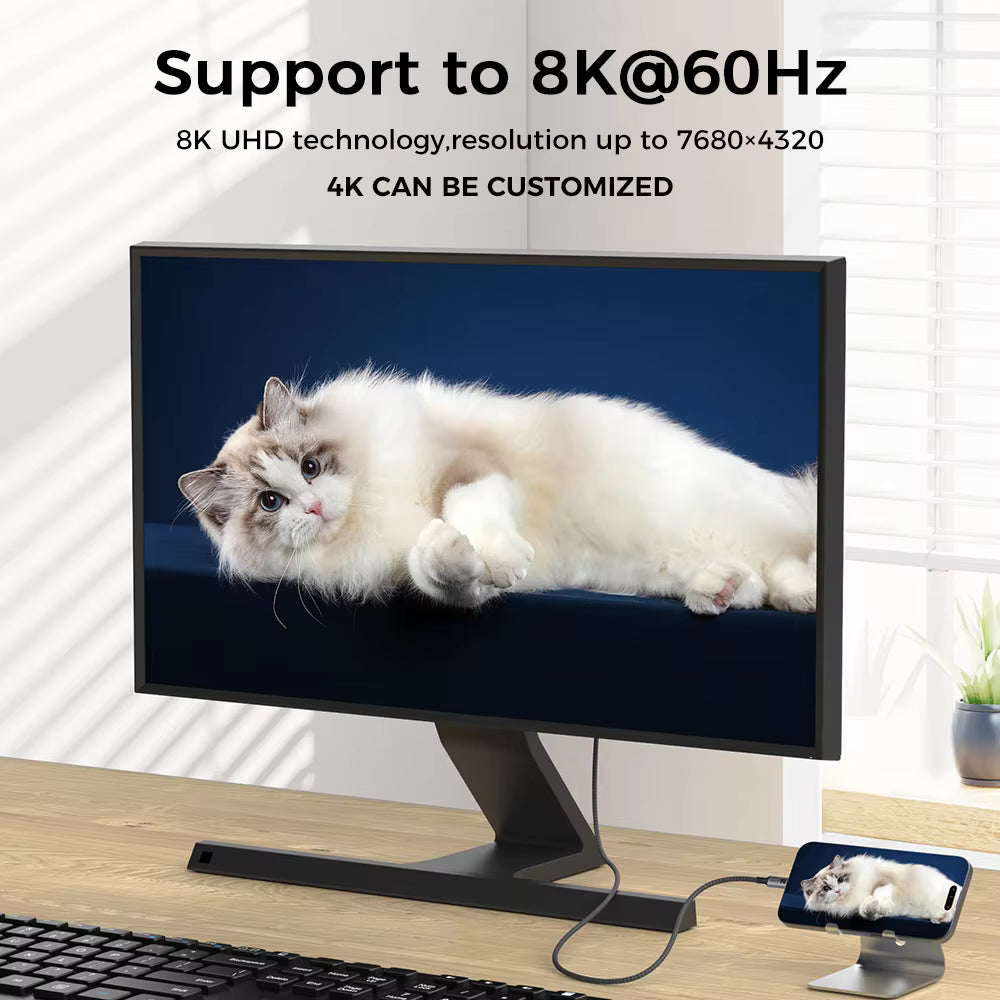 UNIEAN Wholesale 2M 3M 4.5M 60hz Video 2.1 UHD to Type-c 4k 8k Type C UHD Usb Data Cables for Tv Iphones 15 Pro Max