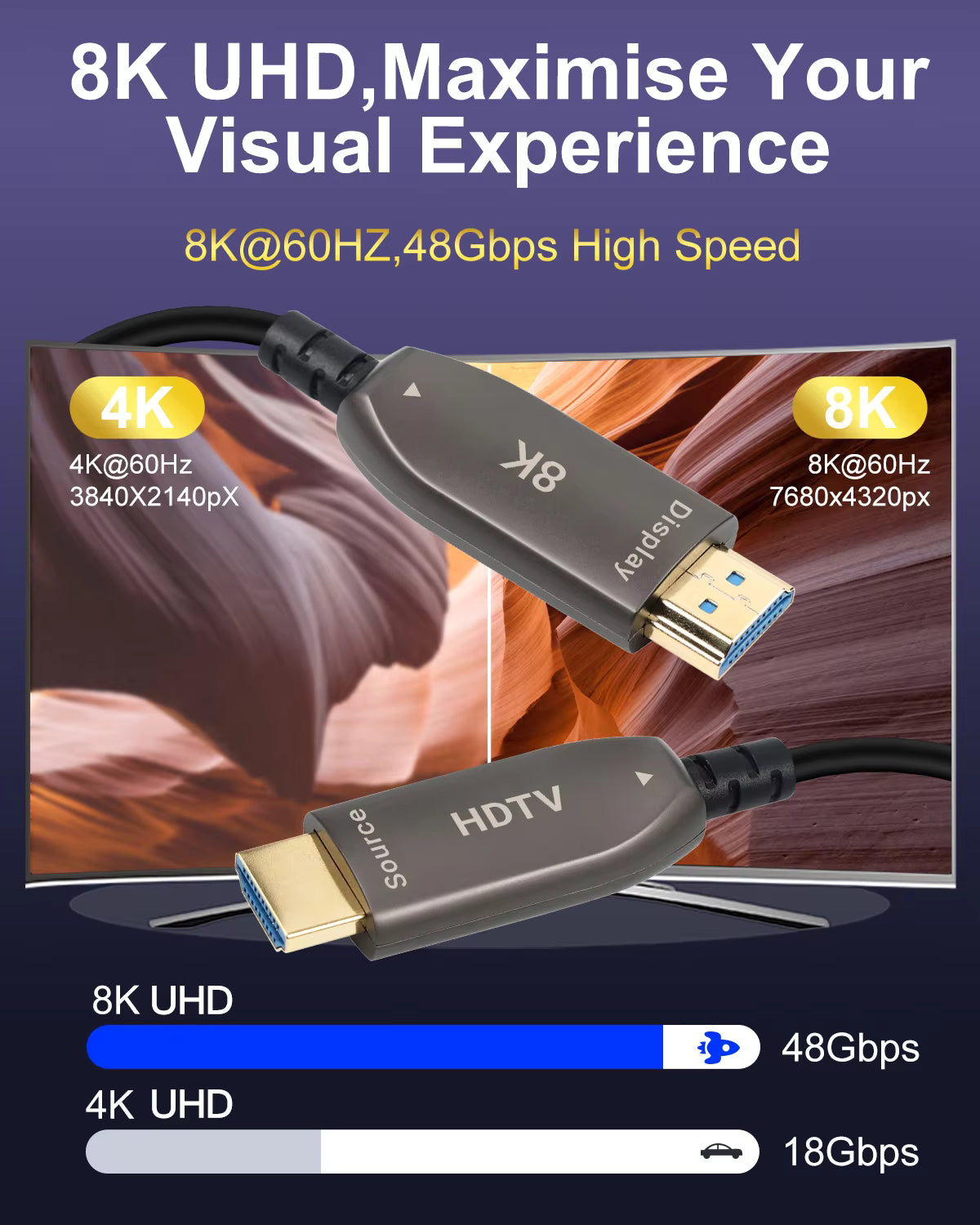 UNIEAN Wholesale AOC HD 10M 50M 100M Long 2.1 UHD Video Cable 60Hz Fiber Optic 8k 4k UHD Cable for TV to Gaming Monitors