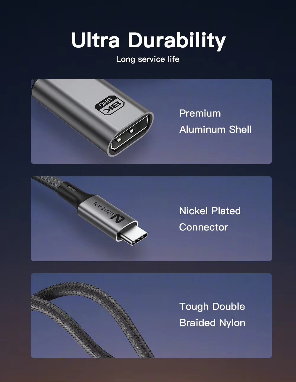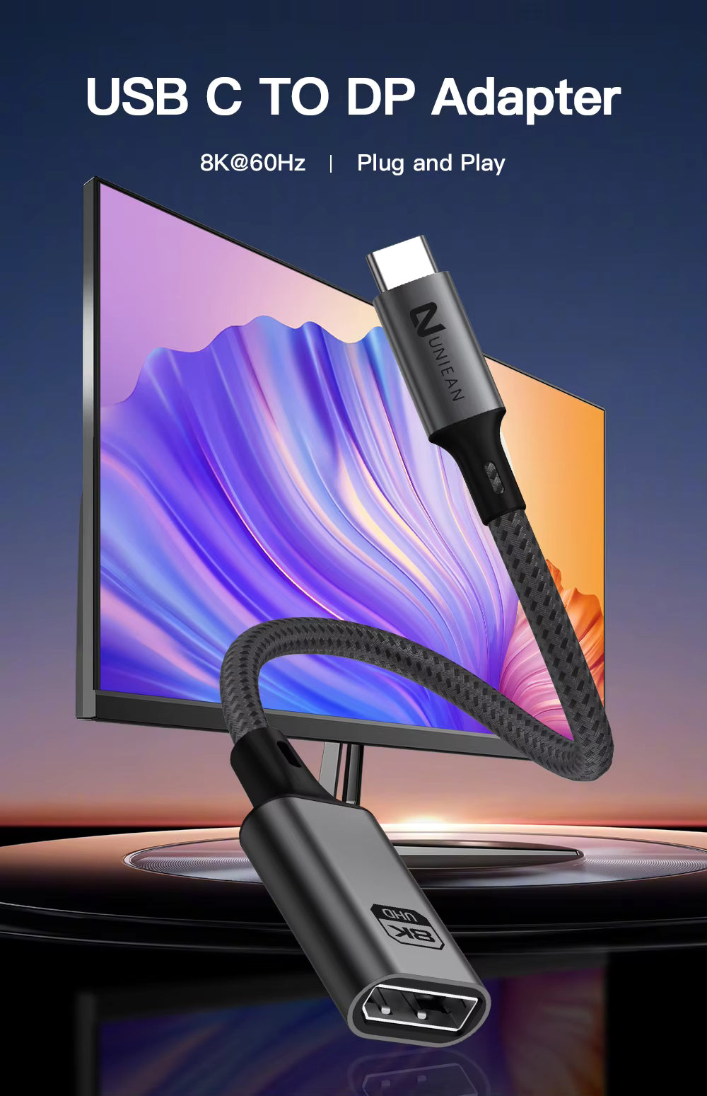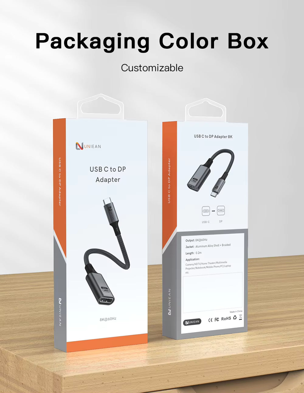 UNIEAN Wholesale HD 2M Usb 3.2 C to DP 60Hz Adapter Display Port Cable Type C to 8K DP Cable for Video Cable to Macbook Pro