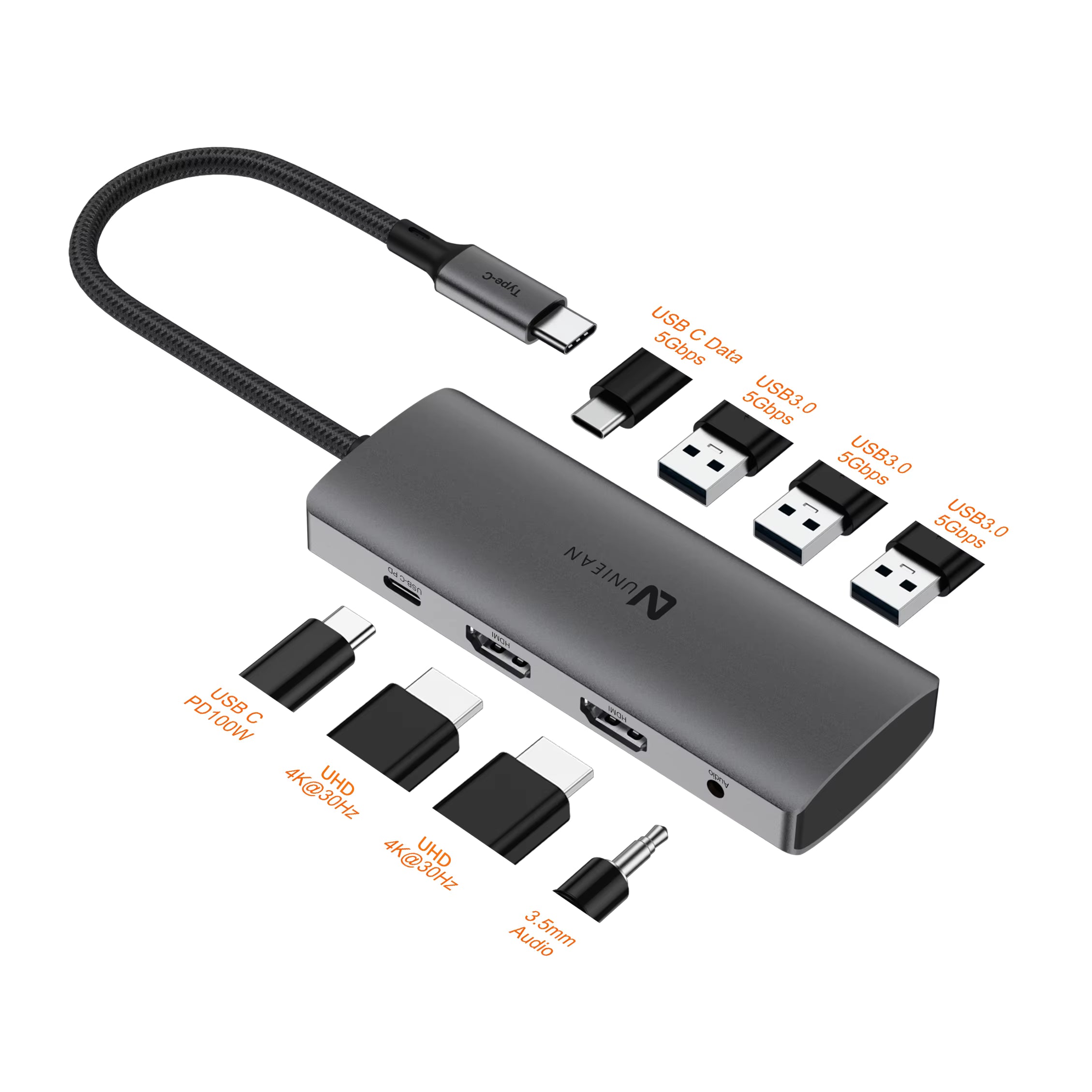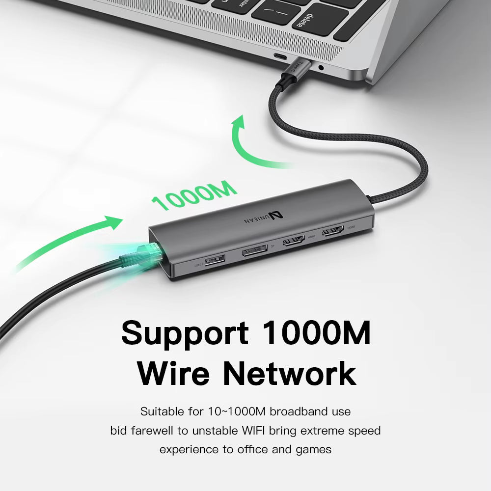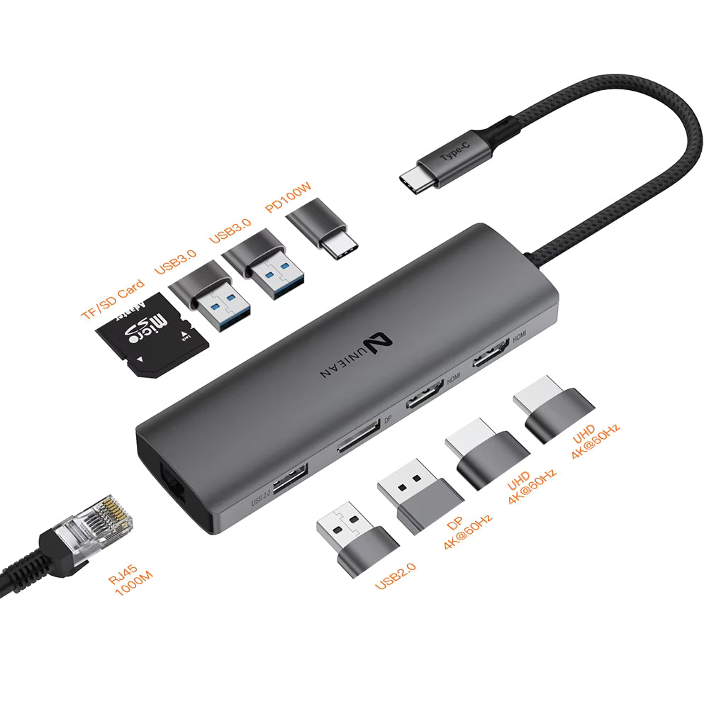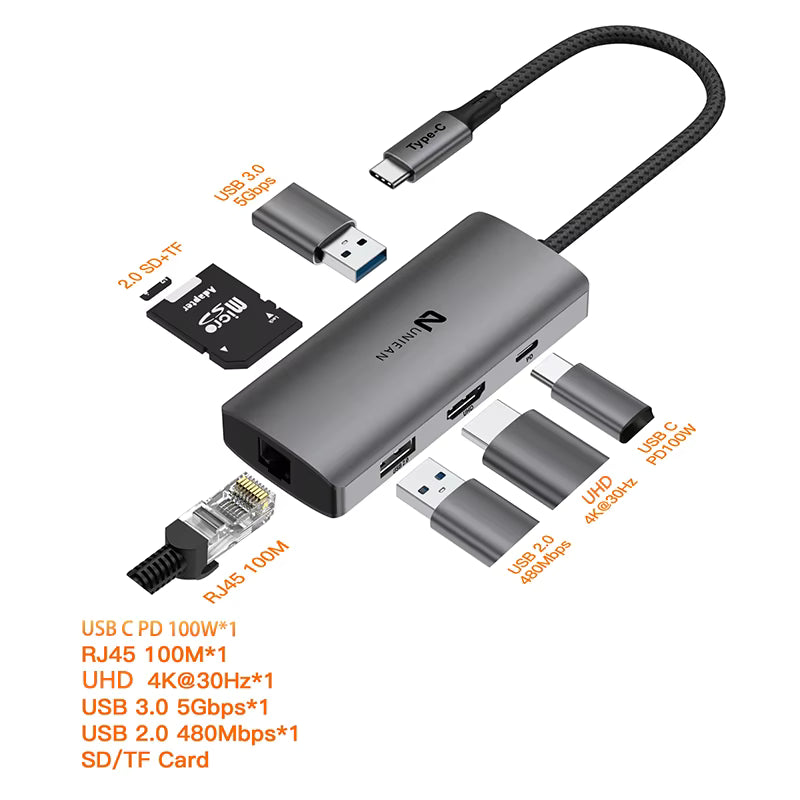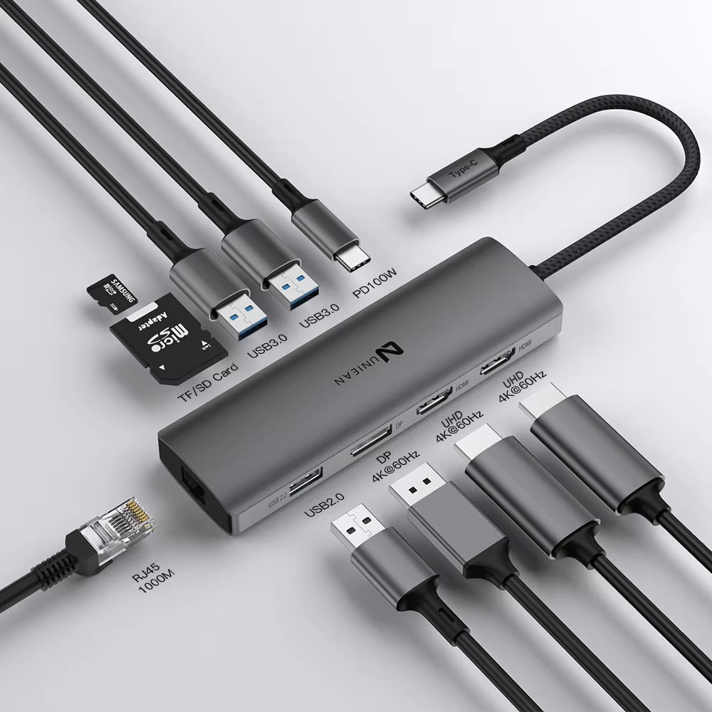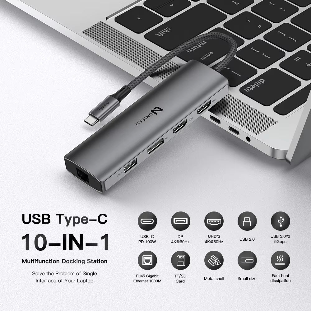 UNIEAN Wholesale Usb C Hub 3.0 10 in 1 Adapter Docking Station Type C Usb Hub 4 Ports 8 in 1 Usb C Hub for Macbook Pro
