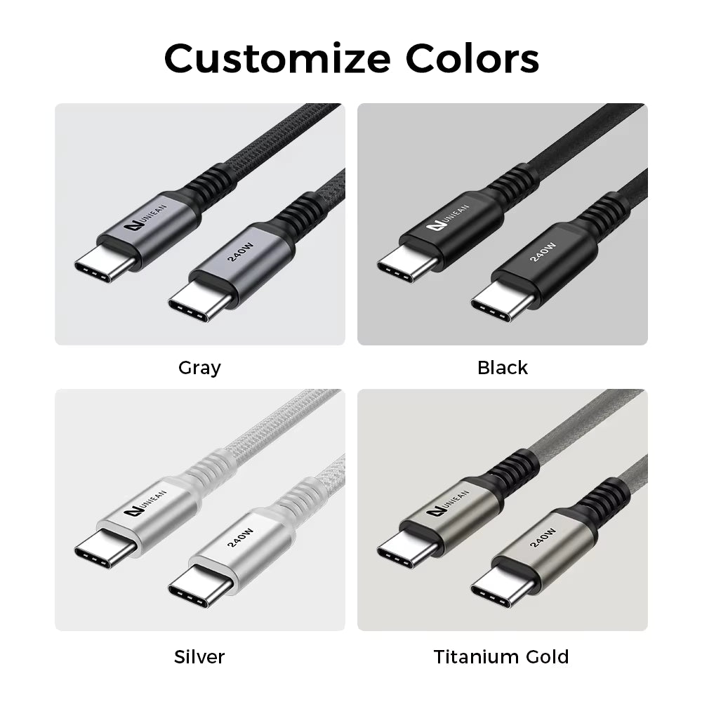 UNIEAN Wholesale USB2.0 C Data Cable 2M 3M PD240W 100W Fast Charging 480Mbps Data Transfer Cord for iPhone Android Devices